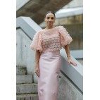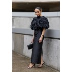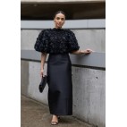 SAIA COM APLIQUE FLORAL E MISSANGAS