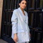 BLAZER BLUE GREY SEQUINED PLAIDS