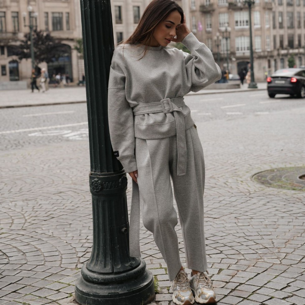 CALÇA TRAINING, COM CORTE CASUAL E DETALHE DE TIRAS COM FIVELA FORRADA NO MESMO MATERIAL.