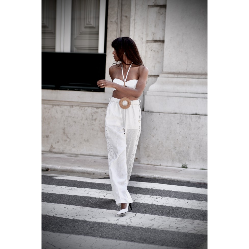 CALÇA ECOPELE COM PREGAS DUPLAS