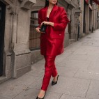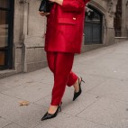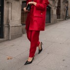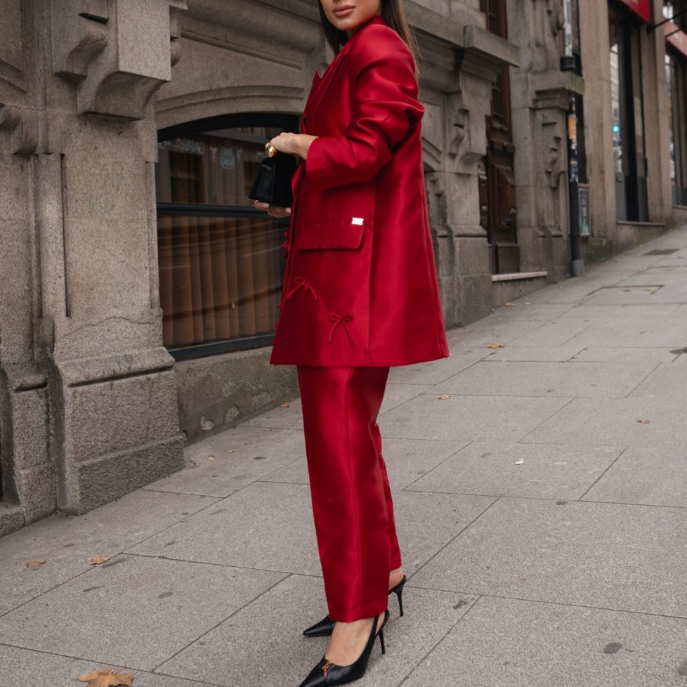 CALÇA ESTRUTURADA DE CINTURA SUBIDA COM BOLSOS E FECHO INVISÍVEL LATERAL.