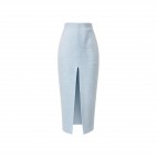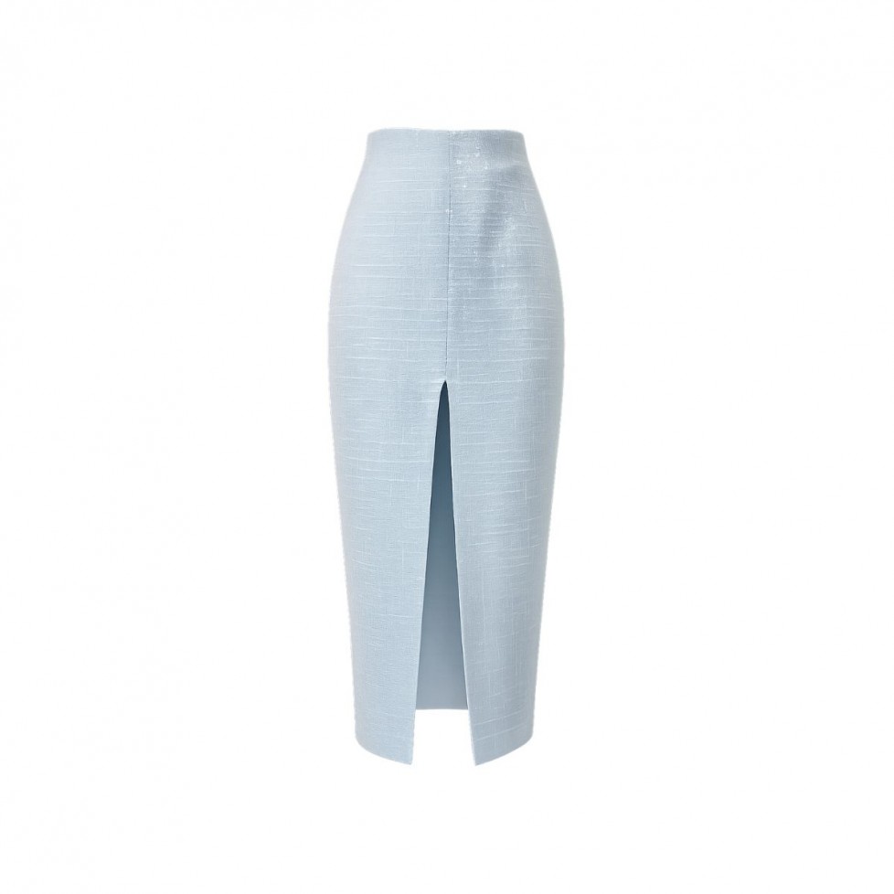 SAIA ESTRUTURADA EM TECIDO TEXTURADO COM LANTEJOULA NA SUPERFICIE, DESENHADA PARA REALÇAR A SILHUETA COM ELEGÂNCIA E PRECISÃO.