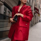 THE MODEL IS 158CM TALL. THE BLAZER IS OVERSIZED AND MADE OF NON-STRETCH FABRIC.